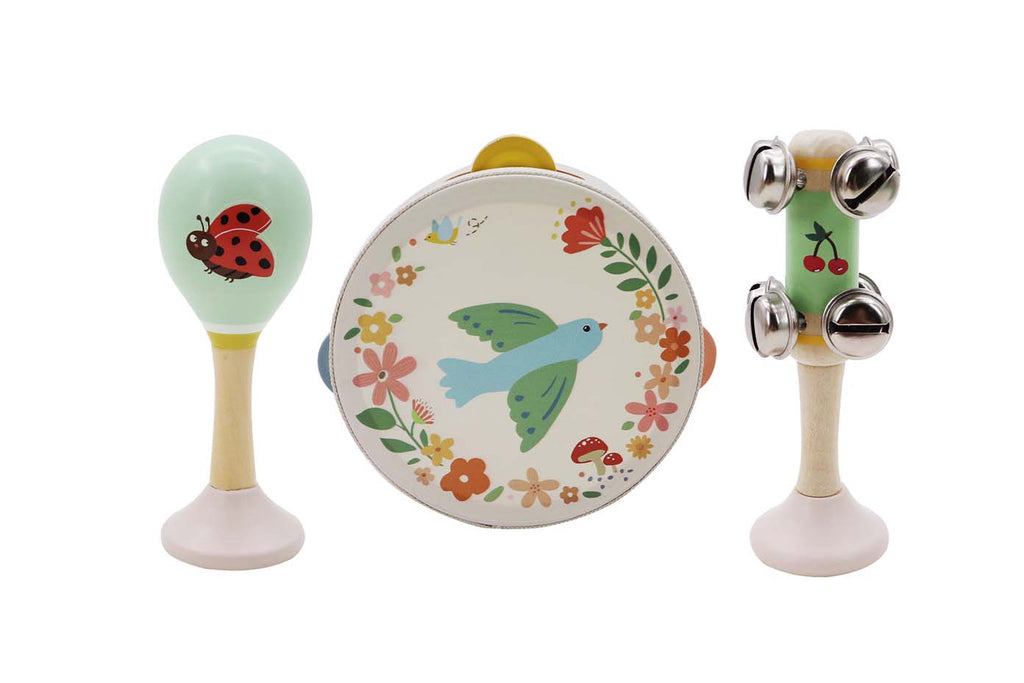 Let the magic of spring flutter into your childs world with the Wooden Spring Insect Bird Music 3pcs Set by Kaper Kidz. This delightful 3 piece musical set, in gorgeous colours, features a charming bird design alongside cute flowers, offering a whimsical introduction to the wonders of music. The set includes a maraca, tambourine, and bell stick, each beautifully painted with non toxic paints, ensuring safe play for your little one. Ideal for nurturing creativity, rhythm, and fine motor skills, this musical set helps toddlers develop coordination and auditory awareness through fun, hands on play. The cheerful sounds of the maraca shake, tambourine jingle, and bell ring will keep little ones engaged, while the bird and flower designs spark their imagination and love for nature. Perfect for early musical exploration, the Wooden Spring Insect Bird Music 3pcs Set by Kaper Kidz is not only a fun way to play but also a wonderful tool for sensory development and learning.
