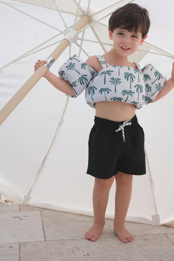 Capture the spirit of summer-time adventures with the Palma Verde swim float. Featuring a bold yet minimalistic design of green palm trees against a neutral backdrop, Palma Verde is the perfect companion for little adventurers ready to dive into endless fun.