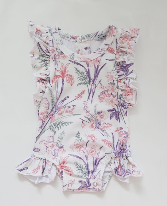 Maman Cotton Jersey Ruffle Romper Ava Floral Botanical Print